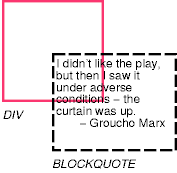 Betrachten Sie das folgende Beispiel eines Block-Zitats (BLOCKQUOTE), das zu groß für seinen umschließenden Block (der durch ein DIV eingerichtet wird) ist. Hier das Quelldokument: